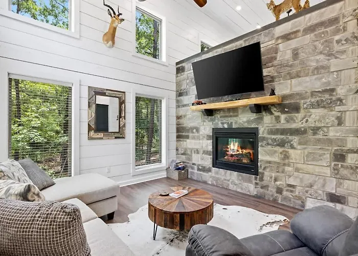 The Rustic Repose - Hot Tub - Bbq - Pets Villa Stephens Gap is located about a 10-minute ride from the Hochatown Petting Zoo and provides cycling for active guests. Providing guests with Wi-Fi and a car park, the Stephens Gap villa is 3.9 km from Cedar Creek Golf Course at Beavers Bend.
